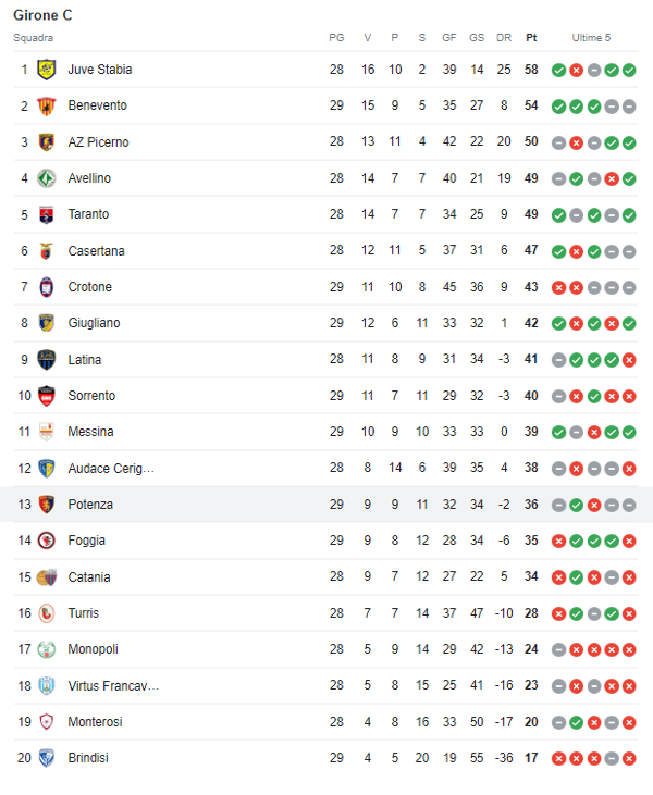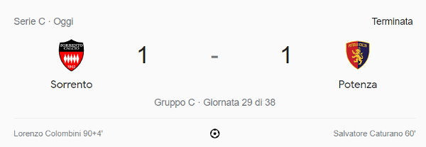 Si è chiusa poco fa la partita tra Sorrento e Potenza Calcio.