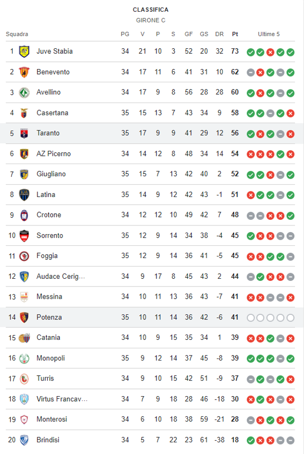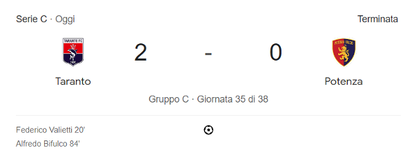 Si è chiusa la partita tra il Taranto e Potenza Calcio.