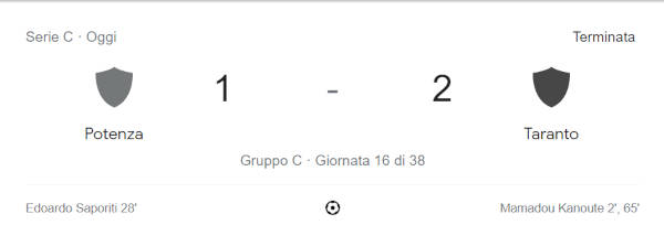 Si è chiusa poco fa la partita tra il Potenza Calcio e il Taranto.