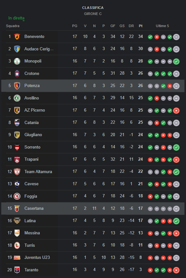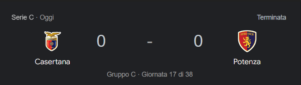 Si è chiusa poco fa la partita tra Casertana e Potenza Calcio.