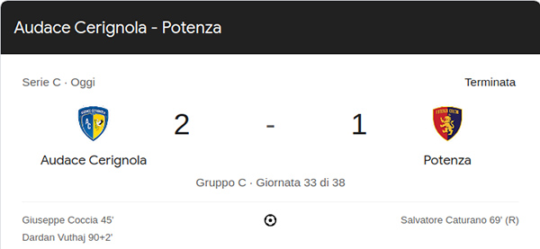 Si è chiusa la partita tra il Potenza Calcio e l’Audace Cerignola.