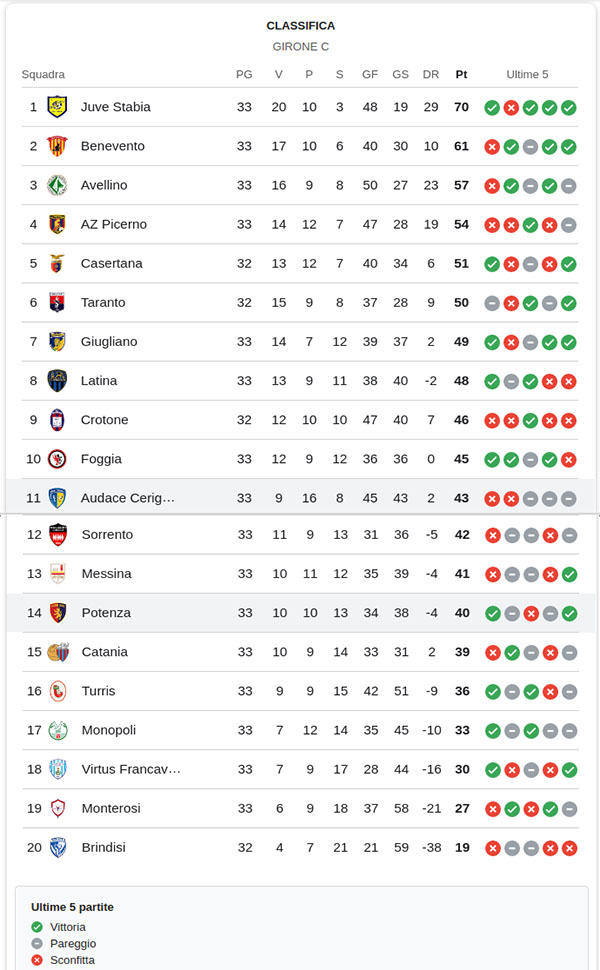 Di seguito i dettagli della partita e la classifica provvisoria.