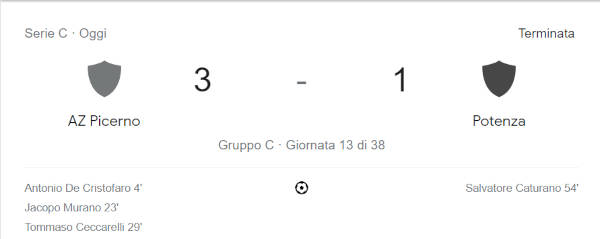 Purtroppo il Potenza calcio ha perso per 3 a 1.