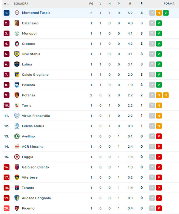 Si ricorda che la giornata d’esordio ha visto il Potenza pareggiare 0-0 sul campo della Fidelis Andria, invece il Monterosi ha battuto con un netto 3-0 la neopromossa Audace Cerignola.