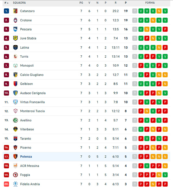 Oggi, Sabato 8 Ottobre, allo Stadio Alfredo Viviani è andato in scena nel pomeriggio Potenza-Pescara, gara valida per la settima giornata del Girone C di Serie C.