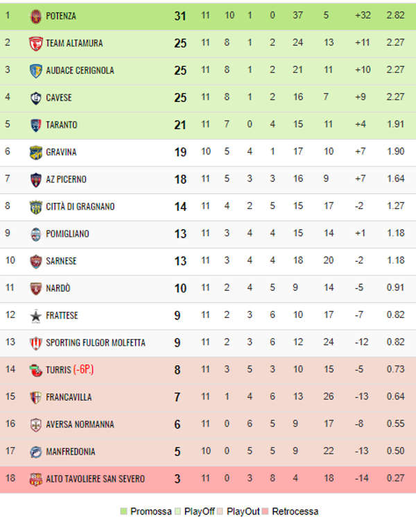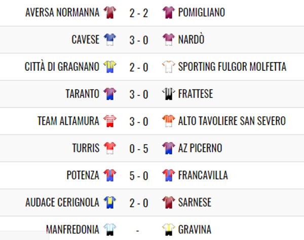 Ecco di seguito i risultati della Serie D, Girone H di questa giornata e la classifica provvisoria (dal momento che la partita del Cerignola non si è ancora conclusa).
