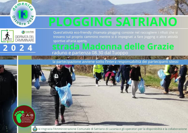 I Camminatori Amatoriali Satrinesi, anche quest’anno aderiscono all’iniziativa e propongono per domenica 13 ottobre “PLOGGING SATRIANO”.