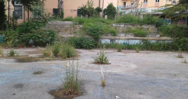 A primo impatto più che ad un campetto di calcetto/tennis, quale dovrebbe essere, sembra di trovarsi davanti a un laghetto artificiale all’interno del quale non è dato sapere quali specie ittiche dimorino.