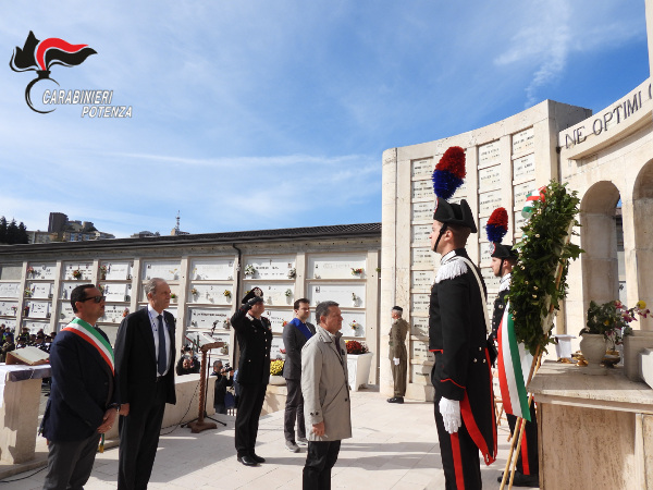 Nella mattinata odierna, con inizio alle ore 10.00, ha avuto luogo la cerimonia di commemorazione dei Caduti di tutte le guerre, presso il Sacrario Militare del Cimitero Monumentale di Potenza, durante la quale si è proceduto alla deposizione di una corona.