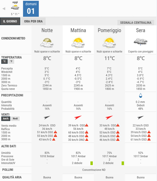 La temperatura massima registrata pare che sarà di 11°C, la minima di 8°C.