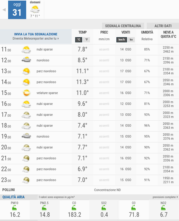 La temperatura massima registrata pare che sarà di 11°C, la minima di 8°C.