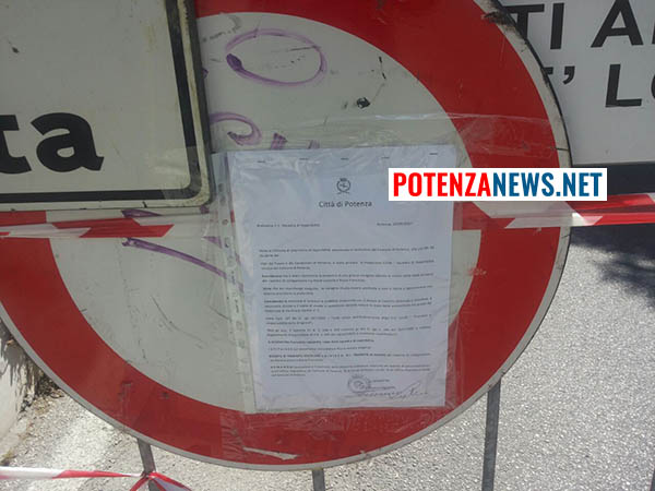 “A causa del cedimento di parte della sede stradale in corrispondenza del civico 7 di via Gavioli, registratosi nella notte, è stata disposta la chiusura, veicolare e pedonale, del viadotto che mette in collegamento via Gavioli con via Baracca, (rione Lucania con rione Francioso).