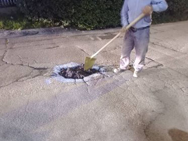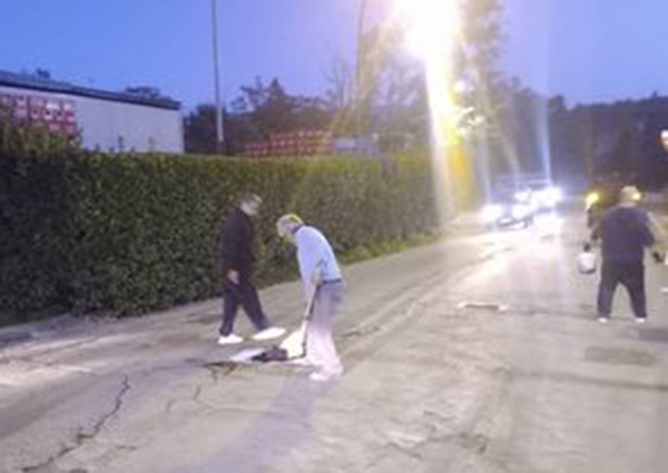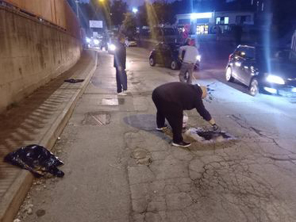 Potenza, cittadini acquistano l’asfalto e tappano le buche di questa strada! Ecco le foto
