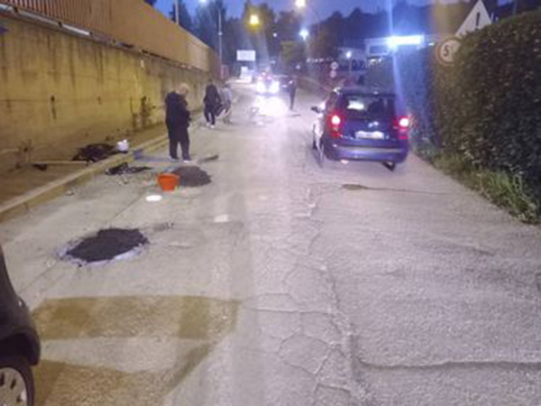 Ammirevole l’azione di un gruppo di cittadini di Potenza che dice basta alle buche su questa strada.
