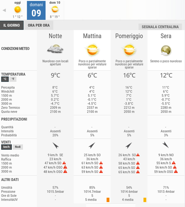 Secondo gli esperti di 3bmeteo, domani, Sabato 9 Marzo, avremo cieli in prevalenza poco o parzialmente nuvolosi per l’intera giornata, non sono previste piogge.