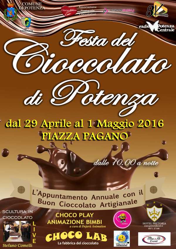 Con la collaborazione e il patrocinio di Comune di Potenza e Apt Basilicata tornerà in piazza tutto il pool di Maestri Cioccolatieri dell’Associazione Nazionale CHOCO AMORE che stanno portando avanti con successo il famoso tour delle Feste del Cioccolato Nazionali.