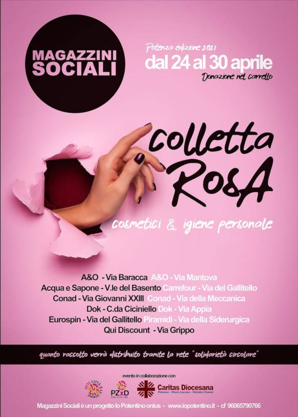 Aderisci alla nostra Colletta Rosa, in collaborazione con Caritas Diocesana di Potenza-Muro Lucano-Marsico Nuovo e la rete Potenza Città per le Donne.