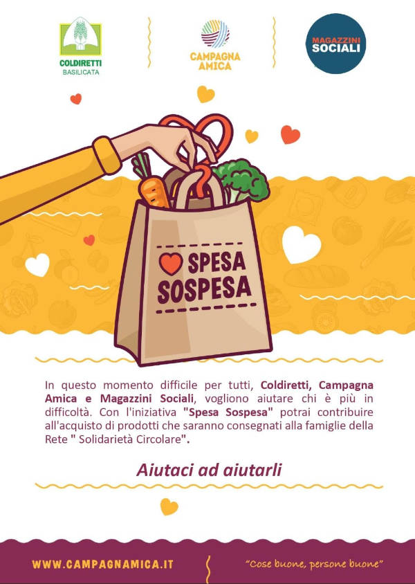 Appuntamento domani a Potenza, al mercato di Campagna Amica di Coldiretti, con l’iniziativa “spesa sospesa”.