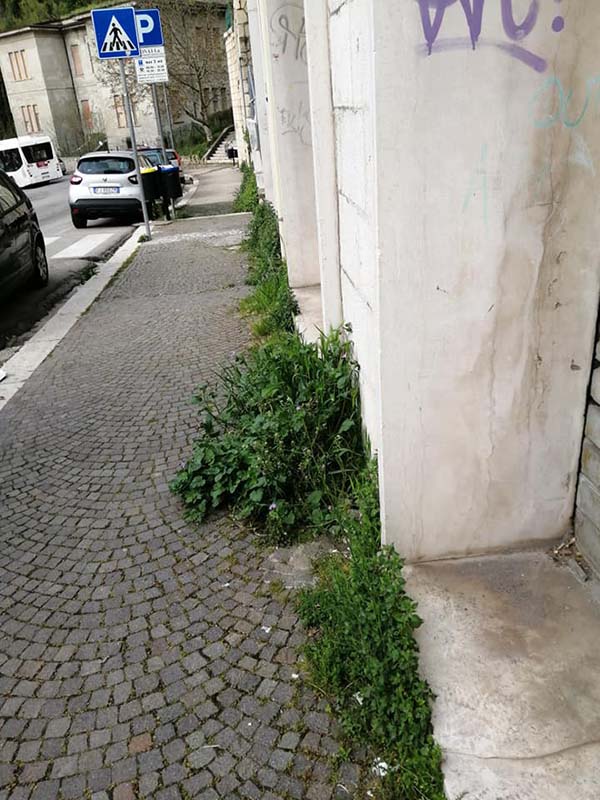 Per non parlare delle erbe infestanti nate tra le giunture dei marciapiedi con le abitazioni.