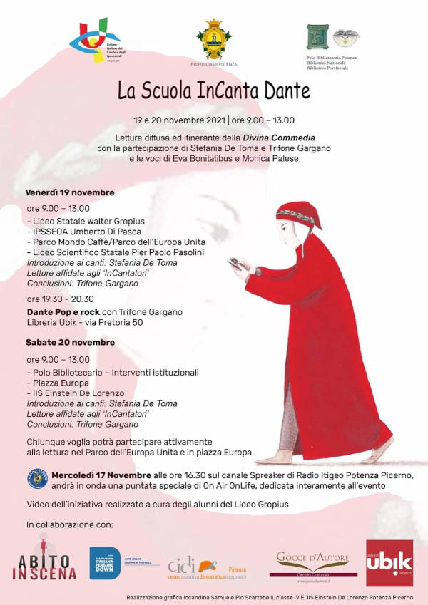 Partendo dal sogno dantesco di una lingua comune che fosse utilizzata da ”fabbri e lavandaie”, l’UICI di Basilicata, da sempre impegnata per la piena inclusione sociale e l’accesso alla cultura attraverso la diffusione del codice Braille, quale patrimonio UNESCO, ha lanciato questa iniziativa di comunità con lo scopo di restituire una lettura universale della Divina Commedia, secondo il principio del “nessuno escluso”.