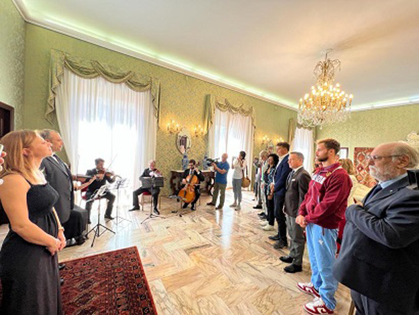 La cerimonia, voluta dal Prefetto per esprimere la riconoscenza delle istituzioni locali all’atleta delle “Fiamme Oro”, gruppo sportivo della Polizia di Stato, è stata aperta dal “Canto degli Italiani”, a cura dei docenti del Liceo statale musicale e coreutico “Walter Gropius” di Potenza.