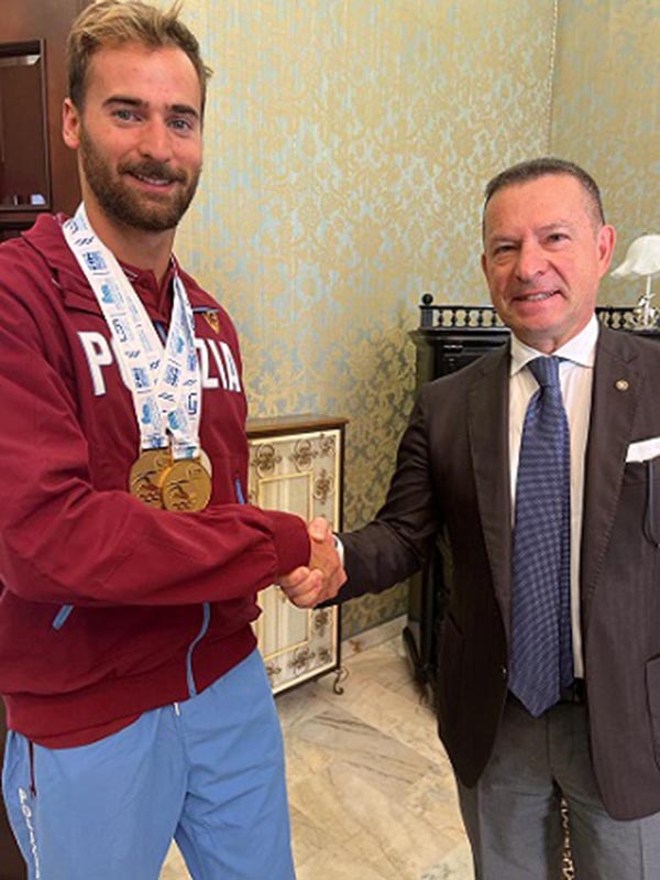 “I traguardi raggiunti da Domenico Acerenza ai recenti europei di nuoto di Roma, che lo hanno visto salire sul gradino più alto del podio, sono grande motivo di orgoglio per tutta la comunità lucana e, al tempo stesso, per l’Amministrazione dell’Interno, in quanto appartenente al gruppo sportivo “Fiamme Oro” della Polizia di Stato.
