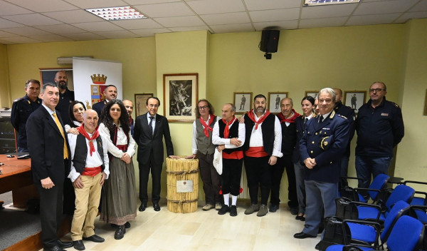 “I Portatori della Iaccara” hanno consegnato una porzione della Iaccara 2024 al Questore Giuseppe Ferrari.