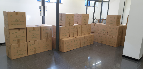 Si tratta di mega confezioni del peso di circa 30 chilogrammi ciascuna, contenenti prodotti agroalimentari donati da alcune aziende alla confederazione agricola.