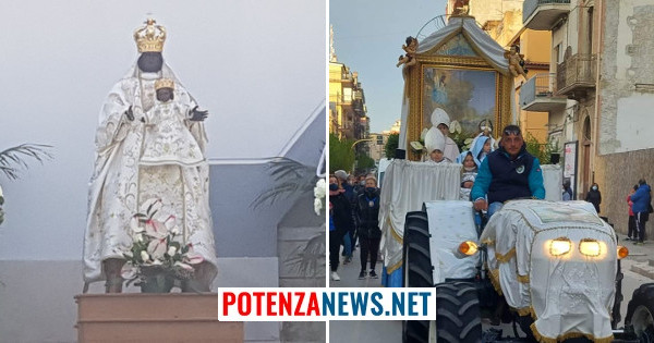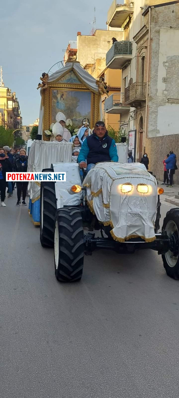 L’ondata dei fedeli lavellesi, nell’ultimo venerdì del mese di Aprile, percorre a piedi più 40 km con i trattori agricoli raffiguranti decorazioni dedicate alla Madonna.