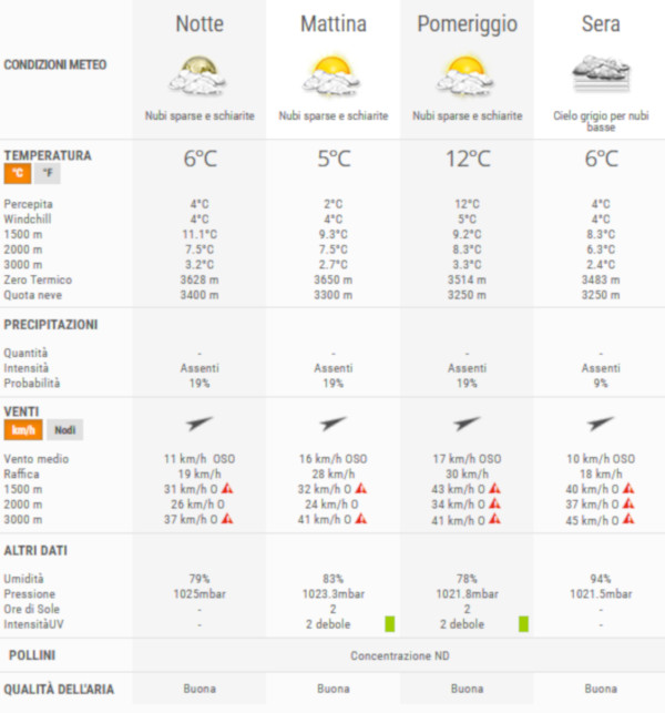 La temperatura massima registrata sarà di 12°C, la minima di 5°C.