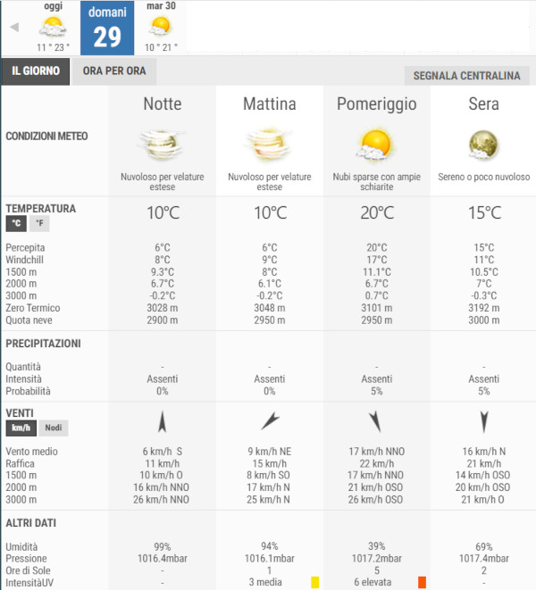 Secondo gli esperti di 3bmeteo domani, Lunedì 29 settembre avremo cieli in prevalenza poco o parzialmente nuvolosi per l’intera giornata, non sono previste piogge.