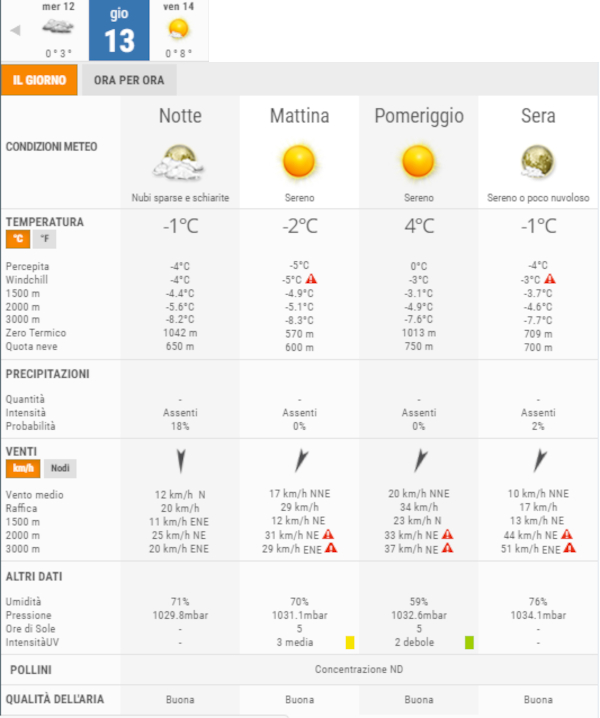 La temperatura massima registrata pare che sarà di 4°C, la minima di -2°C.