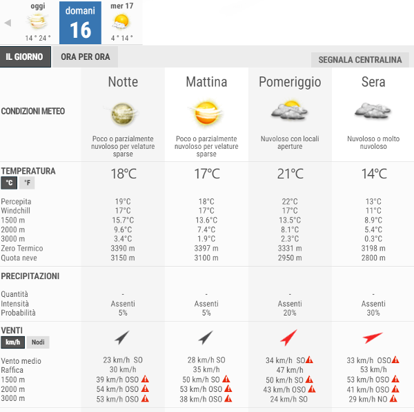 La temperatura massima registrata pare che sarà di 21°C, la minima di 14°C.