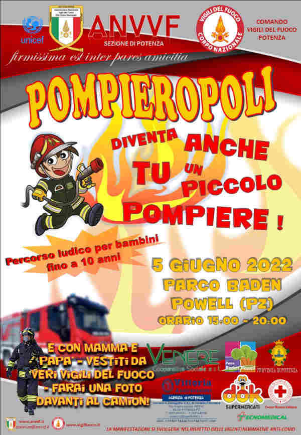 Si prosegue domenica 5 Giugno con “Pompieropoli”, realizzato in collaborazione con il Comando Provinciale dei Vigili del Fuoco e l’ANVVF, un’occasione speciale in cui i bambini diventeranno “Pompieri per un giorno”.