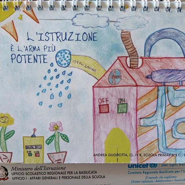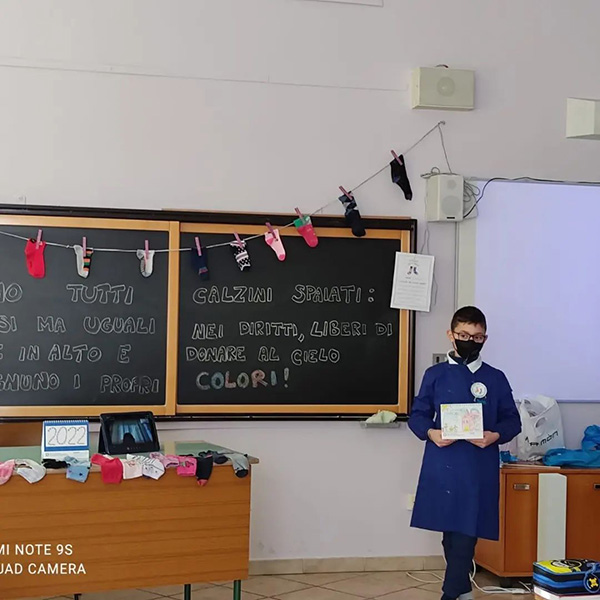In qualità di presidente del Comitato Provinciale UNICEF di Potenza arrivo alle ore 8:45 in un’aula ampia con dieci bambine e bambini che mi salutano con un sorriso e mi mostrano una lavagna con tanti calzini colorati appesi ad un corda.
