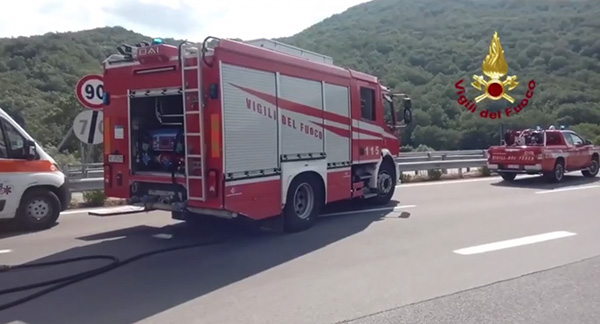 I Vigili del fuoco sono intervenuti con una autopompa ed un fuoristrada per un totale di cinque unità ed hanno messo in sicurezza il mezzo coinvolto nell’incidente.