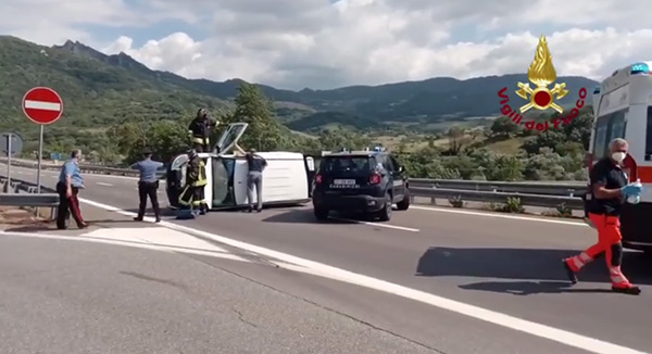 I Vigili del Fuoco giunti sul posto hanno trovato un furgone che, per cause ancora da accertare, si era capovolto rimanendo sulla sede stradale.