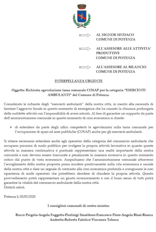 Auspichiamo che l’amministrazione comunale attraverso l’accoglimento della nostra proposta possa incidere positivamente sulla vita economica e sociale della nostra città e dare un segnale di contrasto alla crisi economica profonda e scongiurare la non ripartenza di molti operatori che potrebbero decidere di chiudere la propria attività.