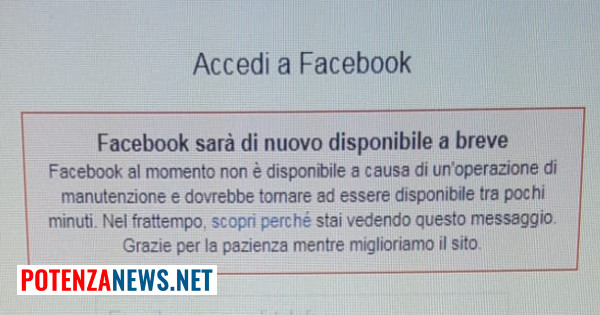Facebook al momento non è disponibile a causa di un’operazione di manutenzione e dovrebbe tornare ad essere disponibile tra pochi minuti. Nel frattempo scopri perché stai vedendo questo messaggio.