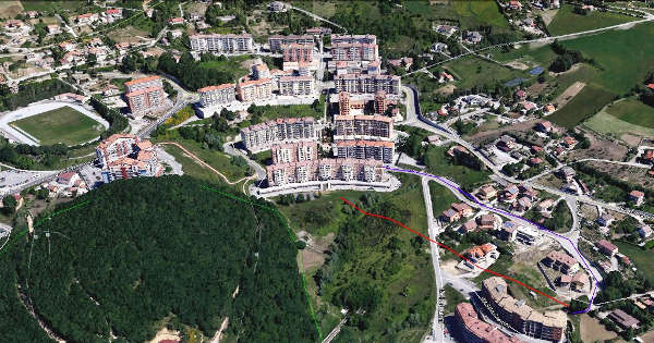 Queste le foto “prima” e “dopo” dell’intervento. Nella foto panoramica di Potenza, con il colore viola è indicato il nuovo tracciato interrato, mentre in rosso il vecchio tracciato aereo rimosso.