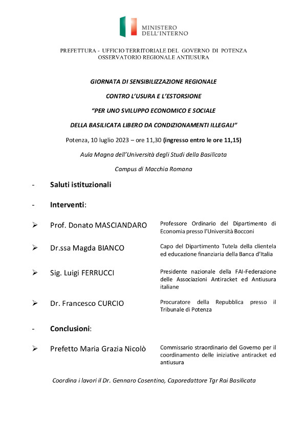 CONVEGNO ANTIUSURA DEL 10 LUGLIO 2023