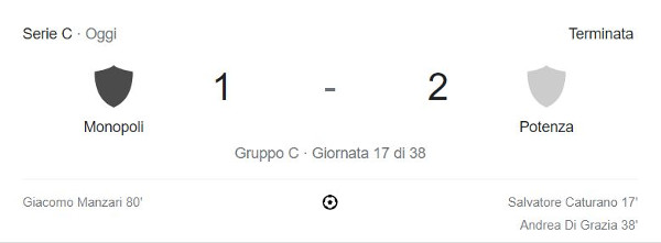 Si è chiusa poco fa la partita tra Monopoli e Potenza.