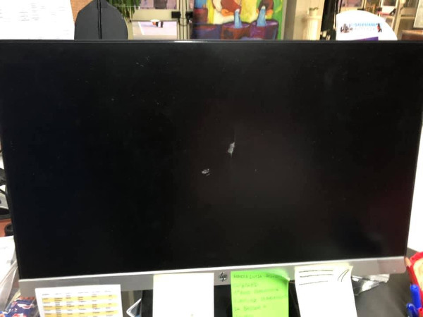 - colpi di martello sul monitor della scrivania della sala direzione;