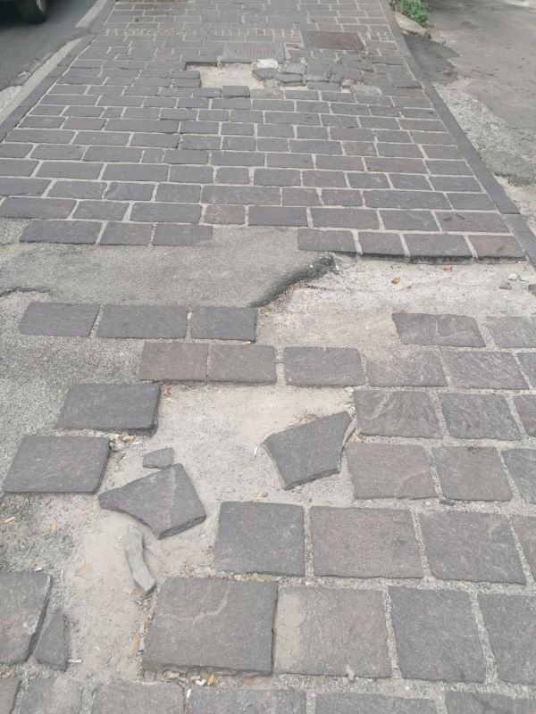 Ormai infatti, sono visibili ad ogni angolo gli ammassi di Betonelle distaccate dallo stesso, con ripetute voragini che costringono i passanti a continui zig-zag per uscire indenni da una semplice passeggiata.
