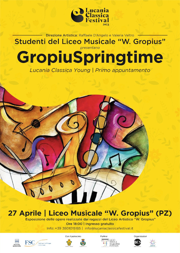 La direzione artistica del Lucania Classica Festival rappresentata da Raffaele D’Angelo e Valeria Veltro insieme agli studenti del Liceo Musicale “W. Gropius” presentano GropiuSpringtime.