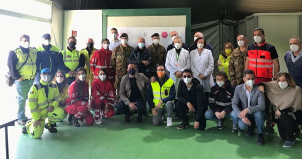 “Questa mattina ha fatto visita al campo per ringraziare ed augurare una buona Domenica delle Palme a tutti gli utenti e a tutti gli operatori che, anche oggi, come ogni giorno, continuano incessantemente nella campagna vaccinale.