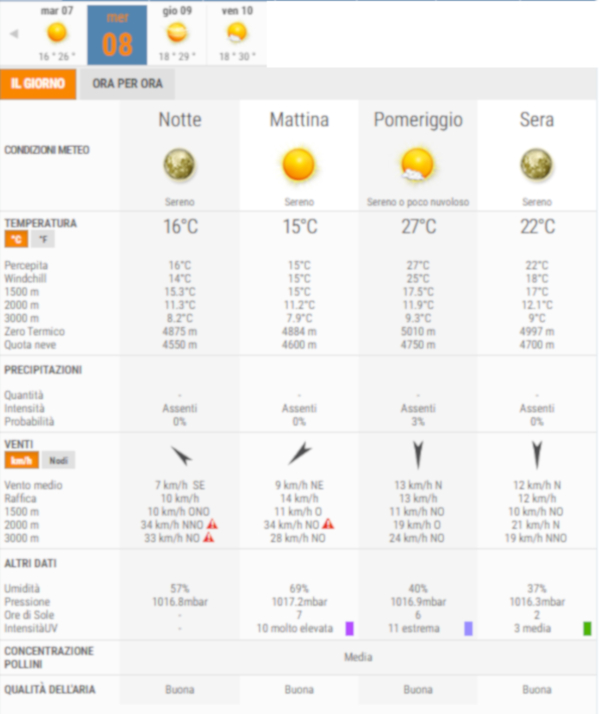 Secondo gli esperti di 3bmeteo, domani, 8 Luglio, avremo cielo in prevalenza poco nuvolosi, salvo variabilità nelle ore centrali della giornata.