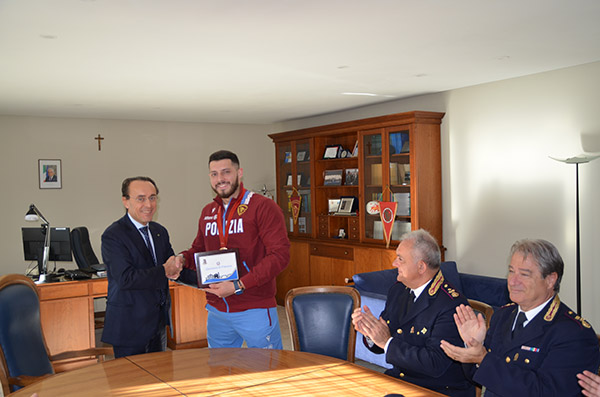 L’atleta lucano, appartenente al Gruppo Sportivo Fiamme Oro della Polizia di Stato, ha accolto con entusiasmo l’invito che il Questore gli ha rivolto durante la cerimonia di ringraziamento organizzata, in suo onore, dall’Amministrazione Comunale di Pietragalla sabato 14 settembre.