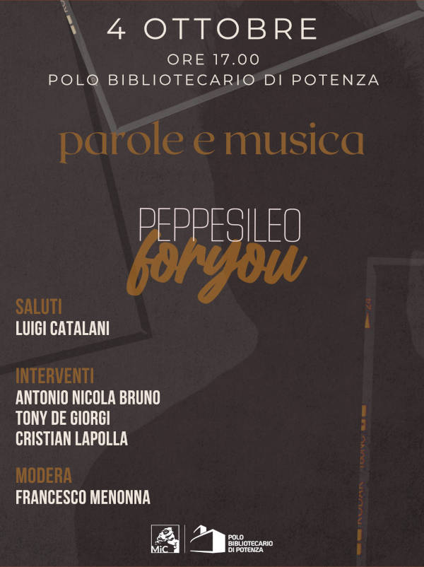Venerdì 4 ottobre 2024 alle ore 17:00 il Polo Bibliotecario di Potenza accoglie Peppe Sileo, cantante e insegnante di canto moderno, per l’incontro e il dialogo con altri musicisti intorno al suo EP For you.