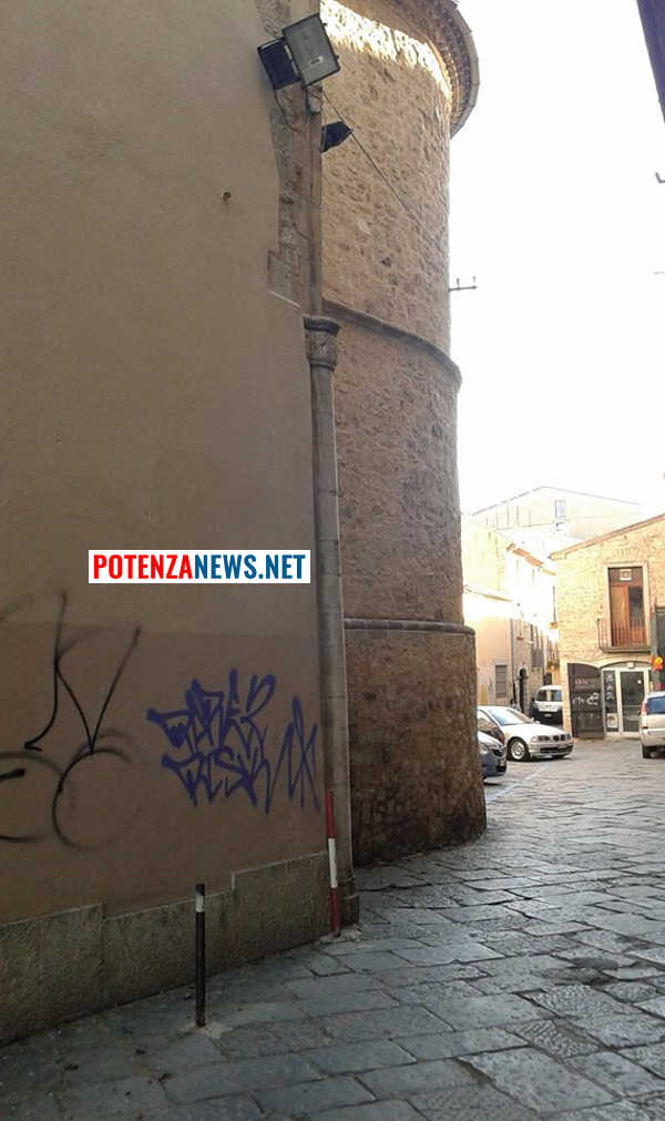 Oggetto dei “graffiti” sono stati, in particolar modo, la Chiesa di San Francesco e la Torre dell’Arco San Giovanni.